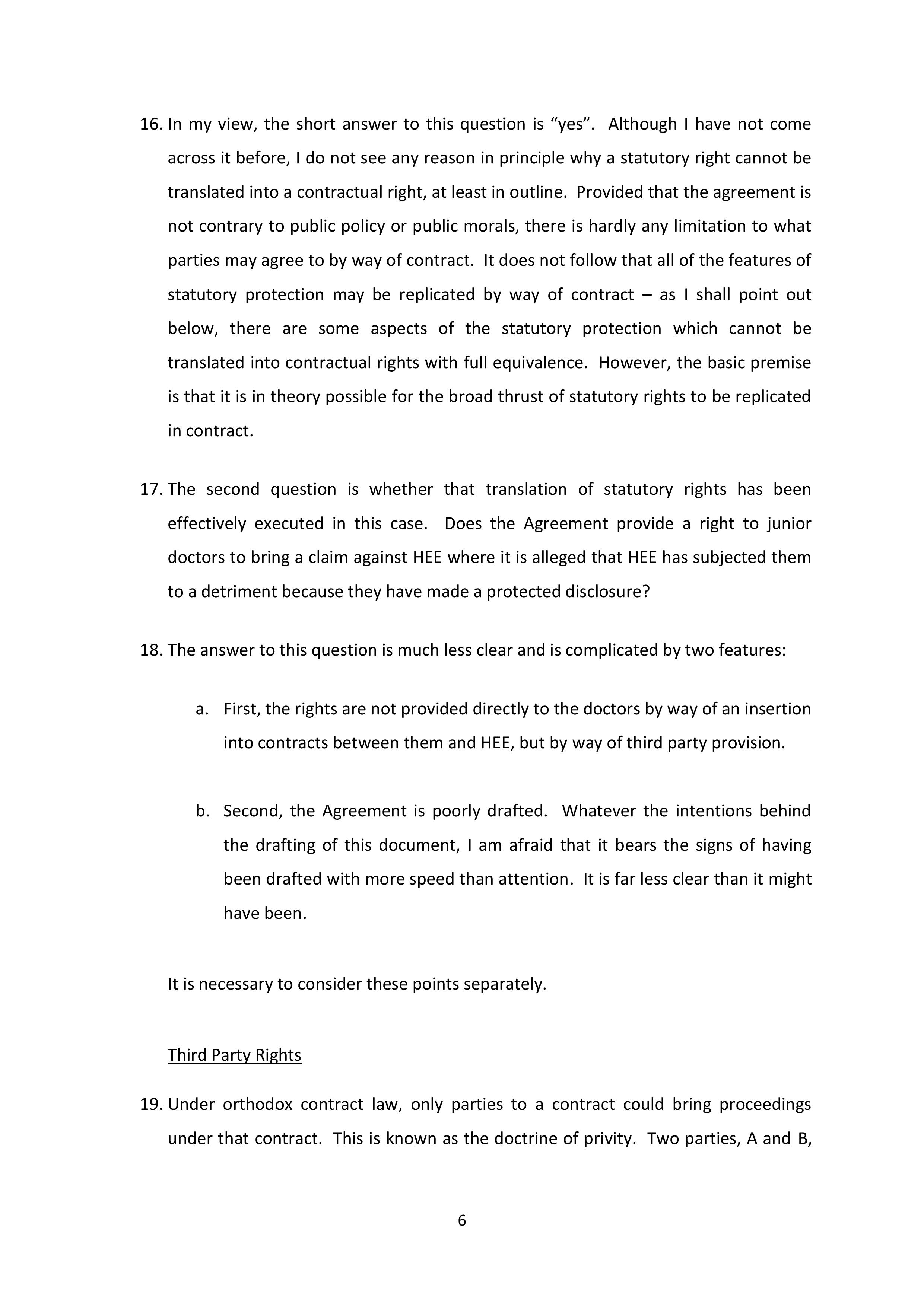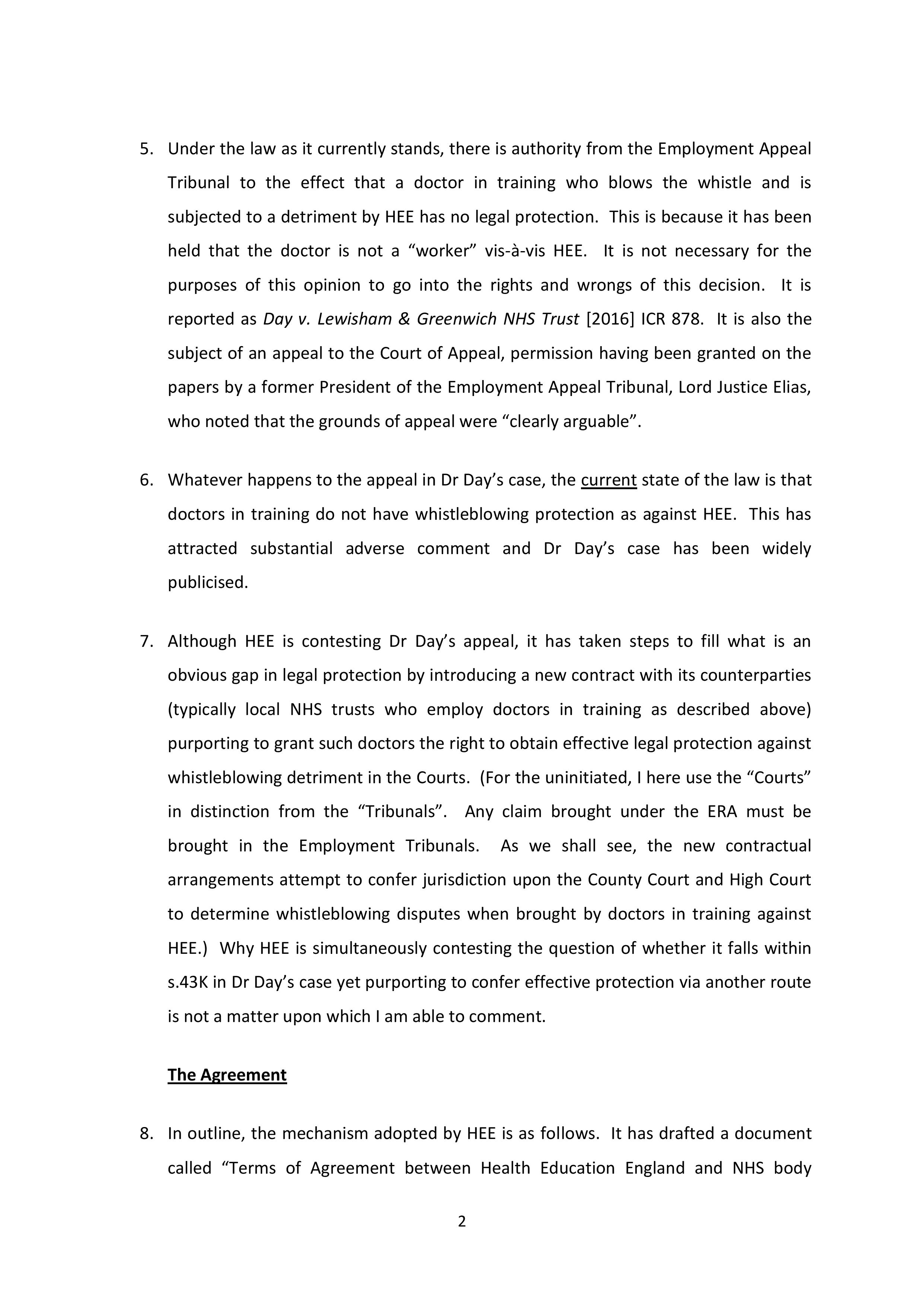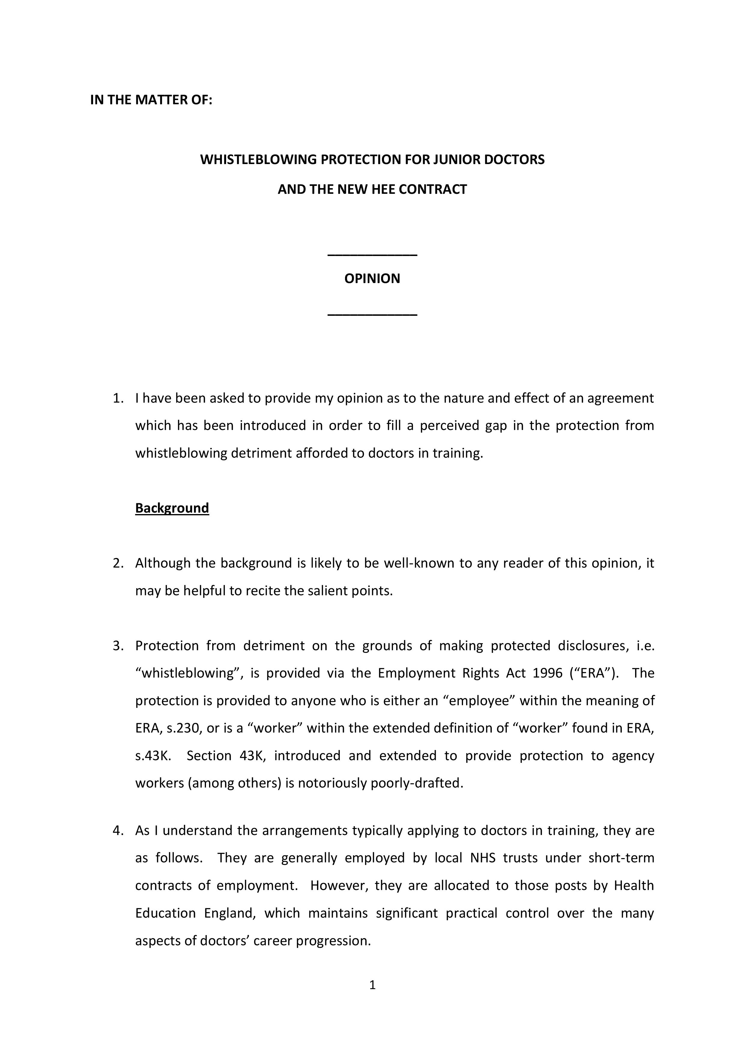 James Laddie QC has provided an expert opinion on the matter of whistleblowing protection for junior doctors and the new HEE contract. Solicitor. Please see our press release and summary of Mr Laddie's opinion.