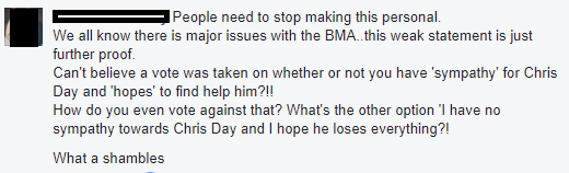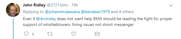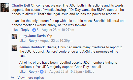 So as the BMA argue about giving sympathy to a me and a case that has safeguarded the whistleblowing protection of 800,000 agency/contractor workers and is one hearing away from finishing the job for junior doctors, I will end with this Facebook comment.