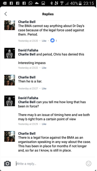 Misrepresenting this as me rejecting BMA legal support for my case seems to be the most obvious aim of the BMA Secretariat statement and is already having an effect on social media. This could have a devastating effect on my ability to crowd fund if believed.