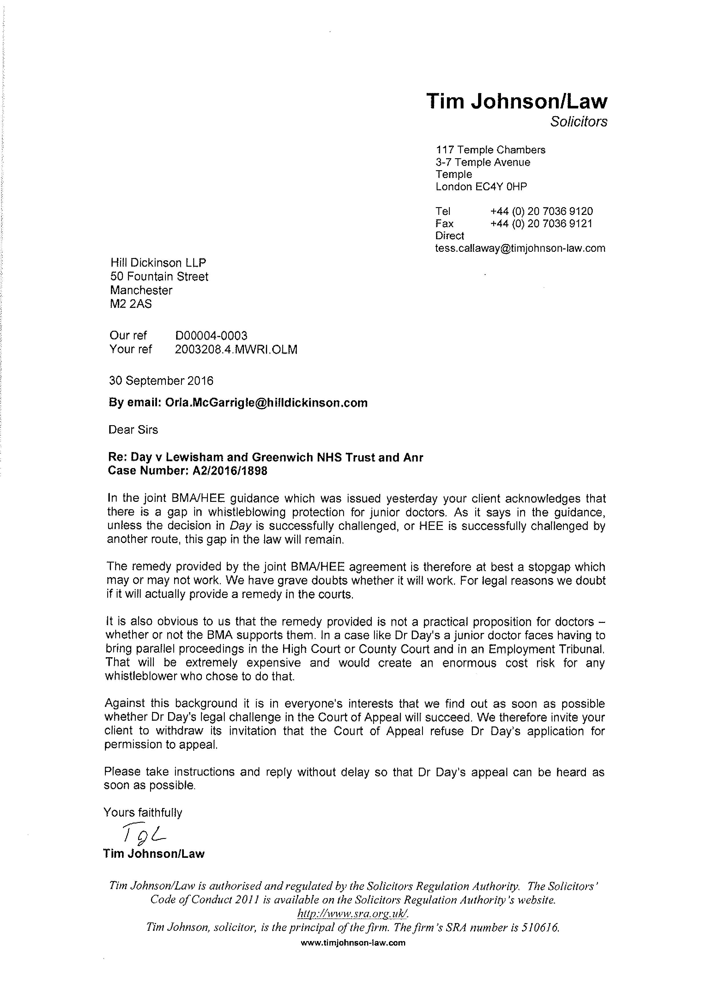 Despite resistance from HEE, we have won leave for the Court of Appeal in order to clarify whether 54k doctors have statutory whistleblowing protection for their career.